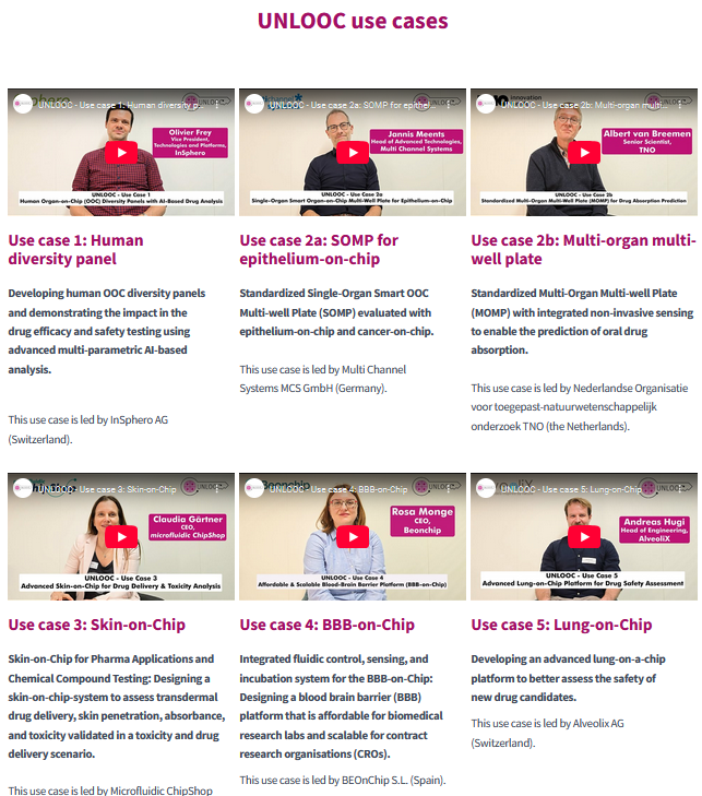 The UNLOOC project, led by microfluidic ChipShop, aims to replace animal testing in drug development by demonstrating innovative use cases of Organ-on-a-Chip (OOC) technology: Human diversity panel, SOMP for epithelium-on-chip, Multi-organ multi-well plate, Skin-on-Chip, BBB-on-Chip, Lung-on-Chip. These advanced systems will enable controlled drug testing and disease modeling, helping to develop more effective treatments while promoting ethical research practice.