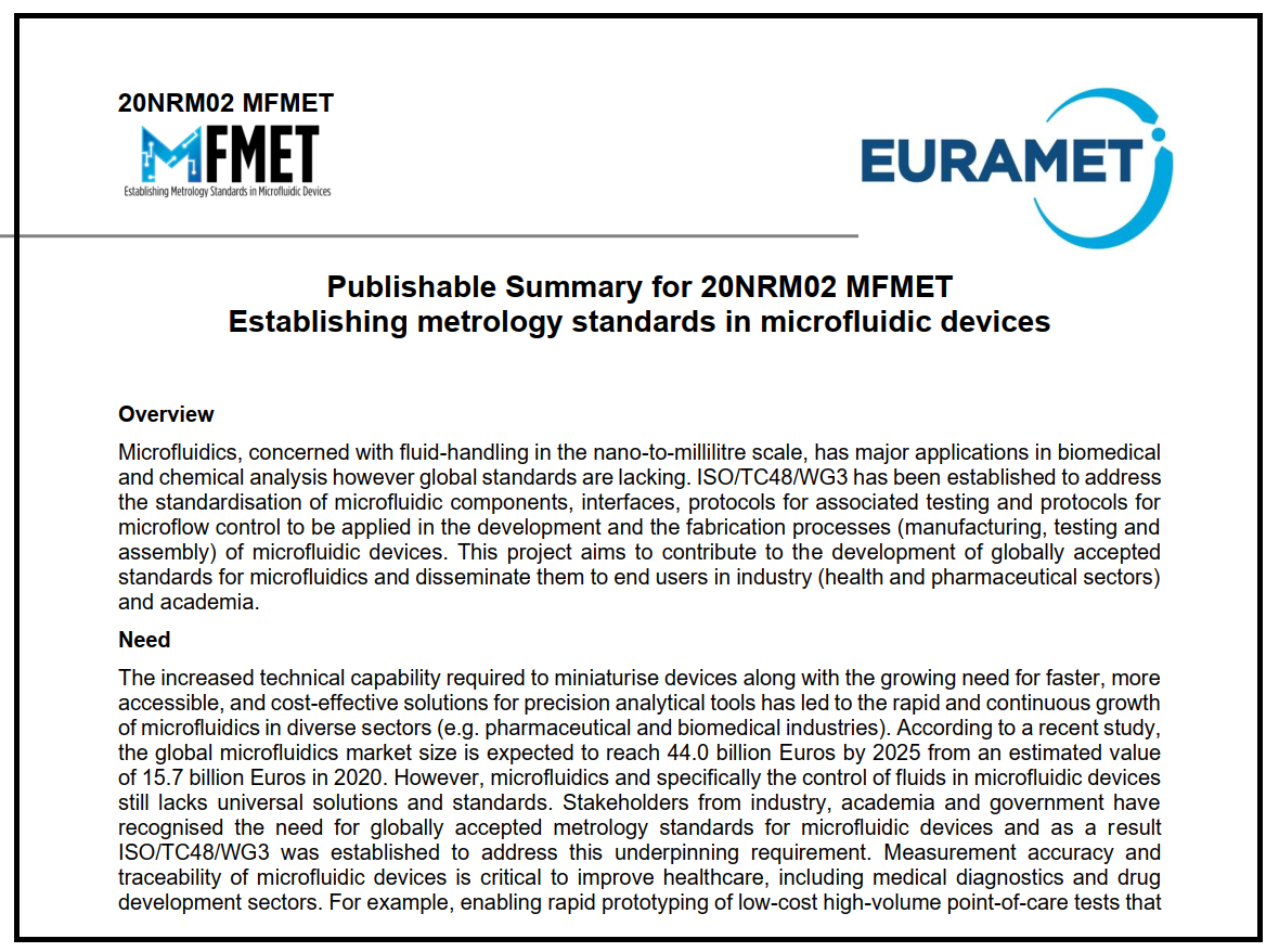 First Publishable Summary of MFMET II: Establishing Metrology Standards in Microfluidic Devices Released