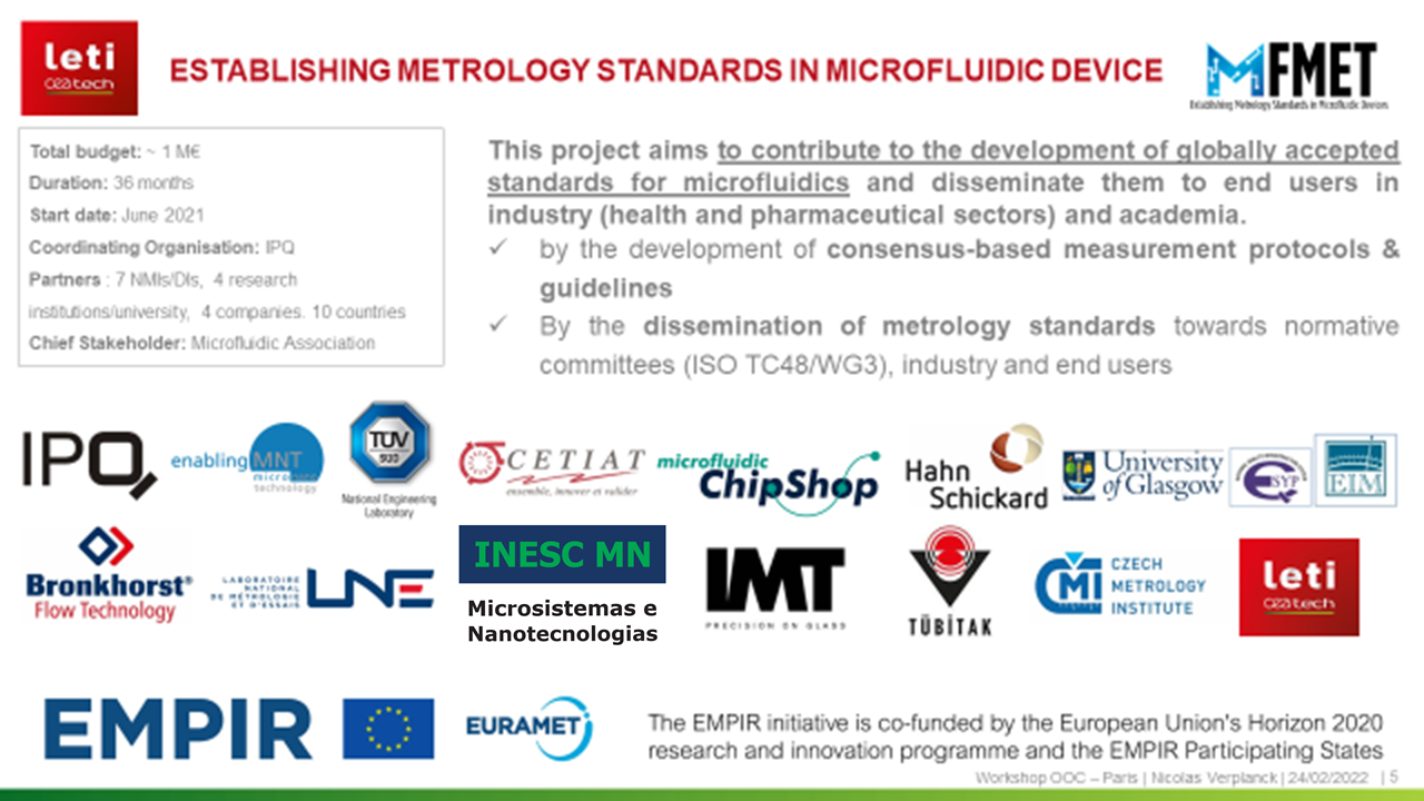 The work on the “Influence of Microfluidic Standards on Organs-on-Chips” by Elsa Batista (Portuguese Institute of Quality – IPQ), Henne van Heeren (enablingMNT Group), Florestan Ogheard (CETIAT), Vania Silverio (INESC MN), Joris Kaal and Nicolas Verplank (CEA LETI), was presented in poster format at EUROoCS 2022, held in Grenoble on the 4th & 5th of July 2022.