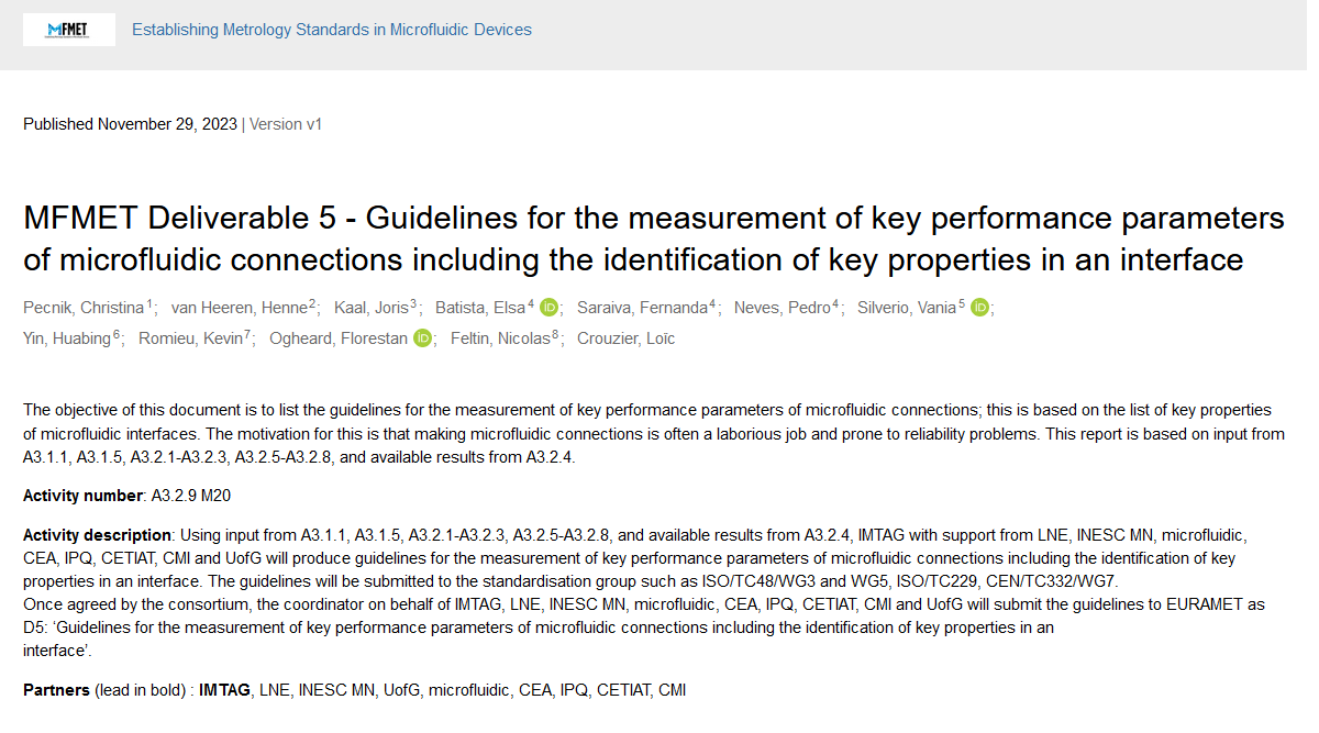 This deliverable with guidelines and a test protocol for flow control evaluating leakage and burst pressure in microfluidic devices is now available. Full document here